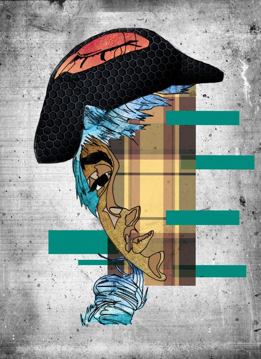 The purpose of this project create a self-portrait by using non-digital materials. Students were to draw their portrait and then use scanned textures to create interest.